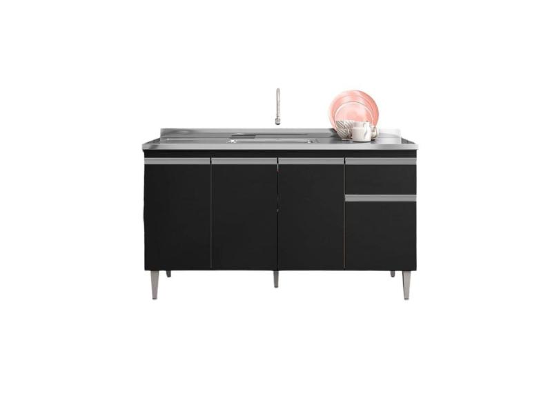 Balcão Armário de Cozinha Tatiane 150cm Preto S/Tampo - AJL Móveis