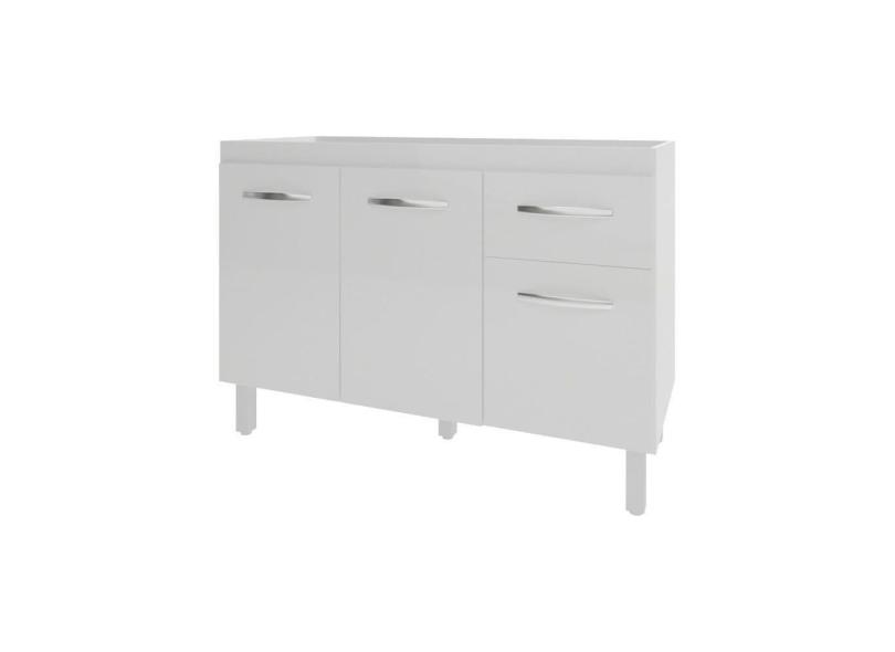 Balcão Armário Gabinete Para Pia de Cozinha 118 cm Aline 3 Portas e 1 Gaveta Branco