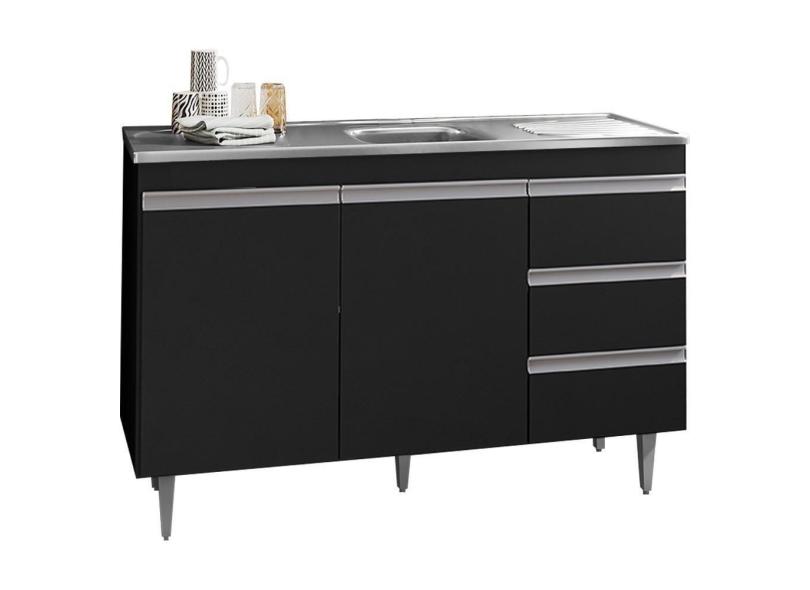 Balcão Com Pia Inox 120cm 2 Portas 3 Gavetas Preto Total