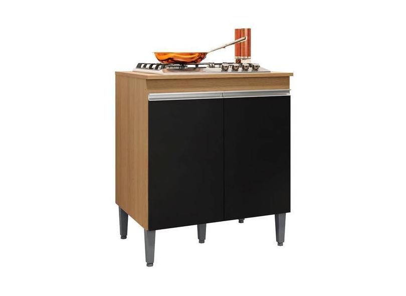Balcão Cooktop 2 Portas Andréia Amendoa Preto Ajl Móveis