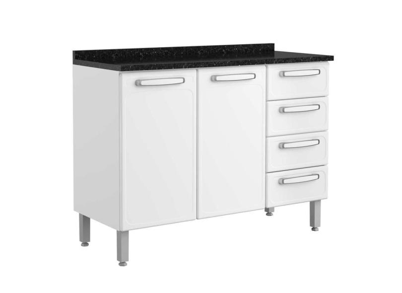 Balcão Cozinha 100% Aço 120cm Com Tampo 2 Portas 4 Gavetas 7126 Evidence Bertolini Branco