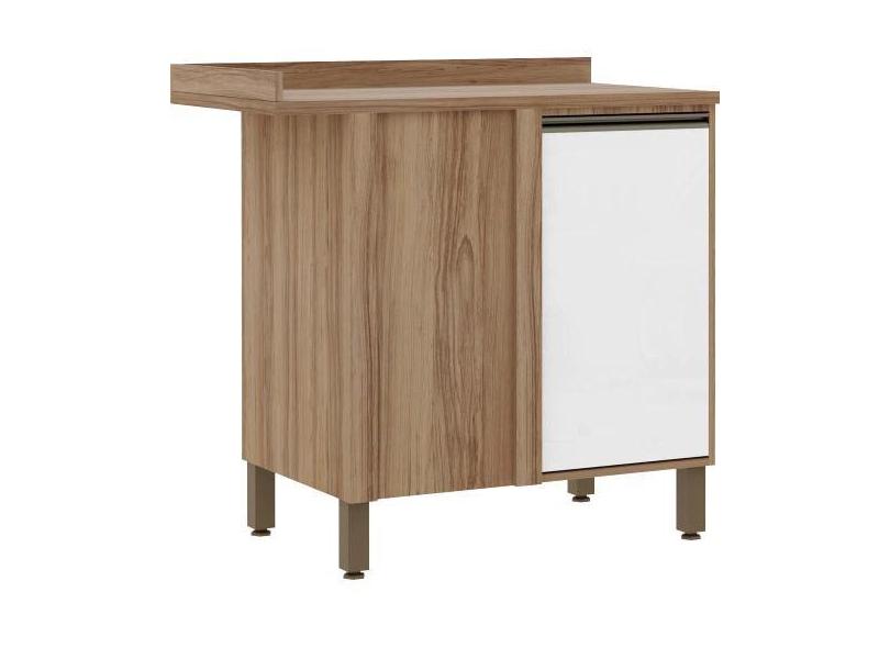 Balcão Cozinha 95cm Canto Reto 1 Porta Branco Laca Mel Luciane Móveis