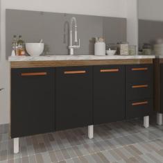 Balcão Cozinha Armário Gabinete para Pia 157 cm 3 Portas e 3 Gavetas Estela Savana Off White