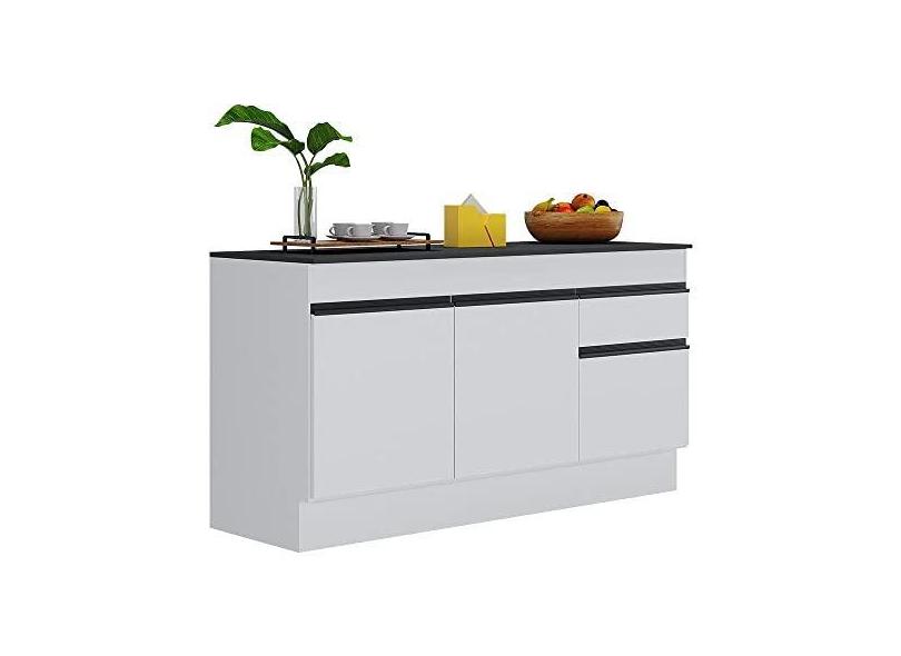 Balcão Cozinha c/Rodapé Gabinete Pia 150cm 3 Ptas 1 Gav Veneza Multimóveis Mp2107.964 Branco/preto