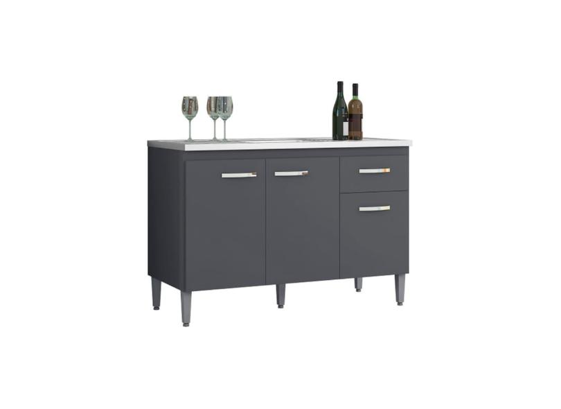 Balcão Cozinha Gabriela 120 cm Com Pés 3 Portas 1 Gaveta Cz - AJL Móveis