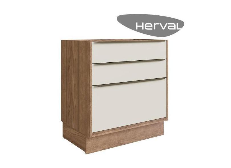 Balcão Cozinha Modular 100% MDF Édez Uno, 3 Gavetas, Off White e Louro