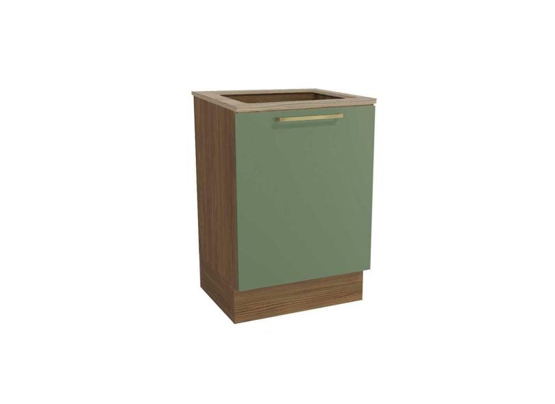 Balcão Cozinha P/Cooktop Botanic M629 Top 1 Porta C/Tampo 60cm Nogueira/Oliva/Nogueira - Kappesberg
