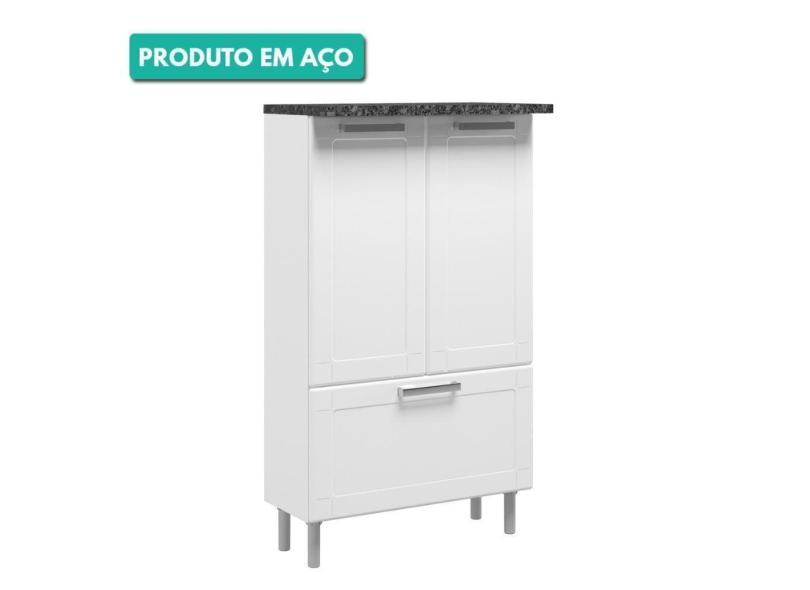Balcão De Cozinha 100% Aço 70Cm Com Tampo 2 Portas 1 Gaveta 6124 Múltipla Bertolini Branco Branco