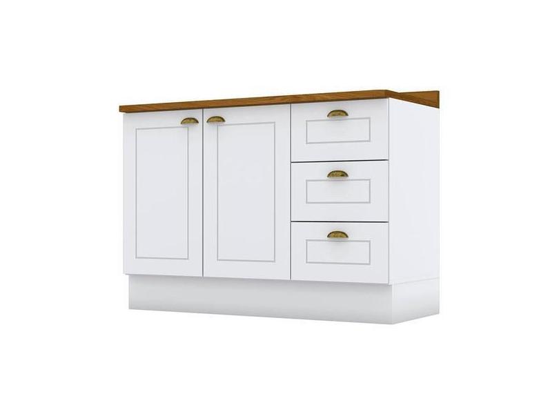 Balcão De Cozinha 120 Cm Americana Branco Com Tampo Nature Henn