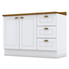 Balcão De Cozinha 120 Cm Americana Branco Com Tampo Nature Henn