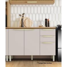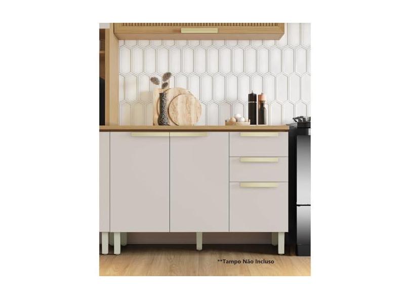Balcão de Cozinha 120cm 3 Portas 2 Gavetas em Mdf sem Tampo New Porto Freijó/Off White