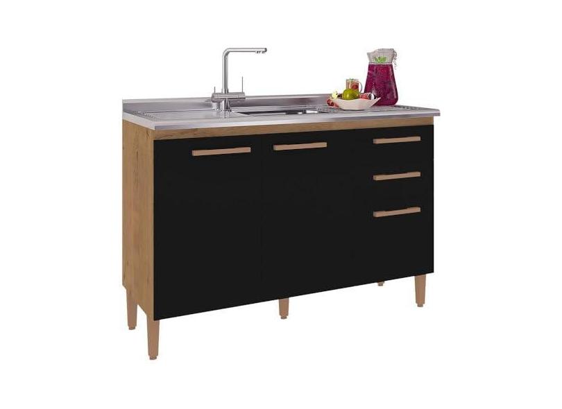 Balcão de Cozinha 120cm com 3 Portas e 2 Gavetas Multimóveis Cr20226 Canelato Rústico/preto