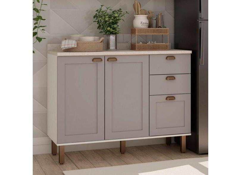 O menor preço encontrado no Brasil para Balcão de Cozinha 120cm Iluminata 100% Mdf 2 Portas 3 Gavetas Branco/Marrom Claro - Genialflex atualmente é R$ 724,42.