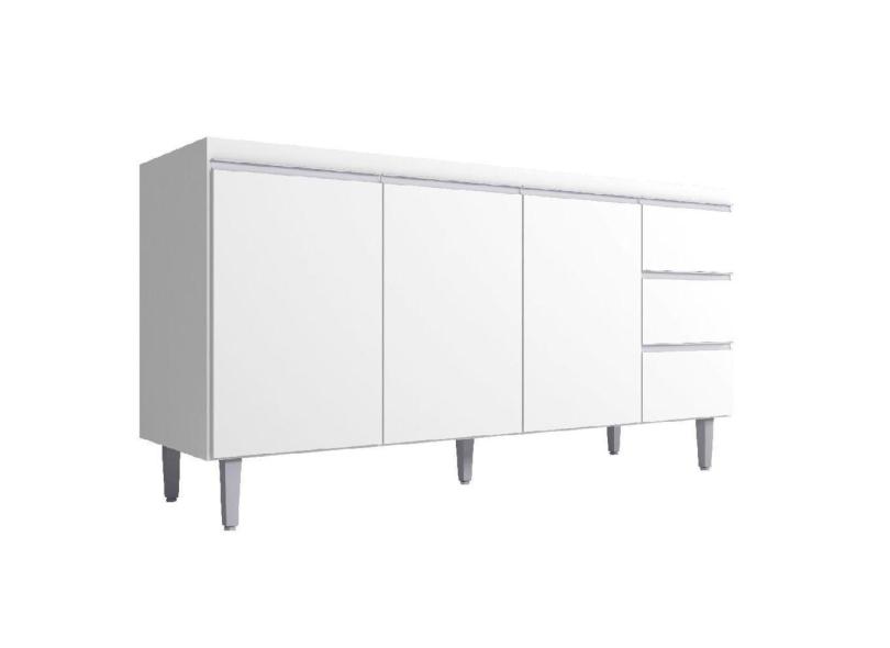 Balcão De Cozinha 150cm Com Tampo Andréia 3 Portas 3 Gavetas Branco Ajl