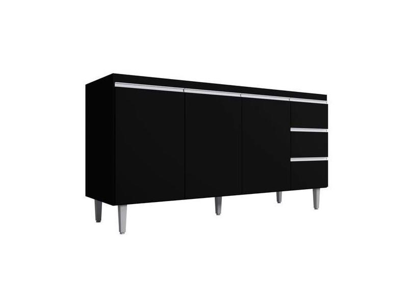 Balcão De Cozinha 3 Portas Andréia 150 Cm Preto 1824 Com Tampo Mdp Ajl