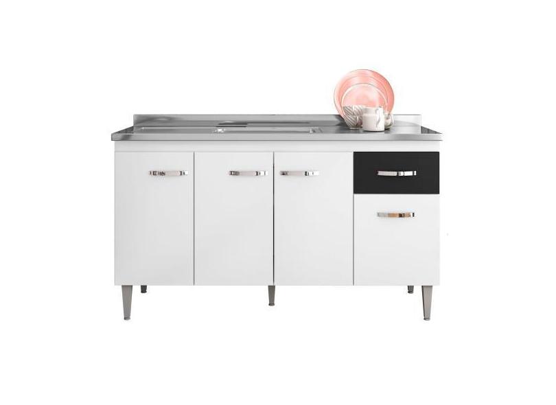 Balcão de Cozinha 4 Portas Gabriela 150 cm Branco e Preto Flex 1054 Co