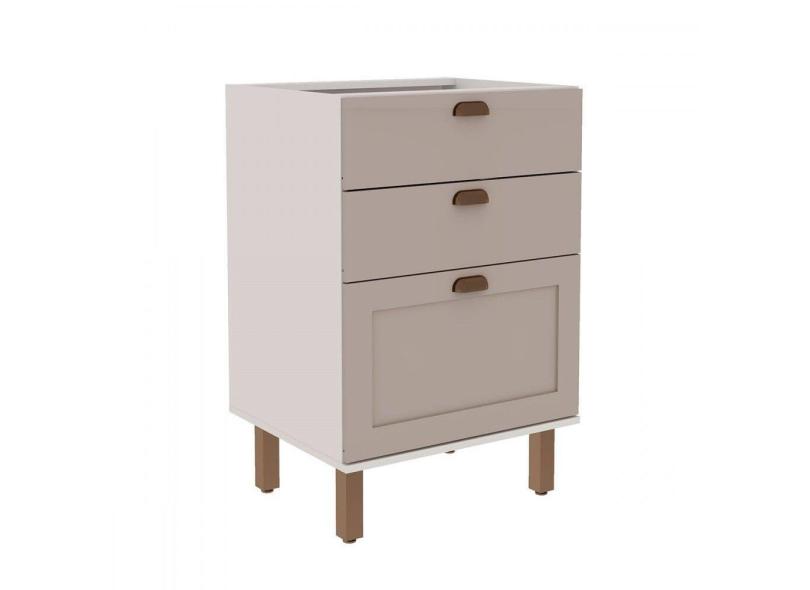 Balcão de Cozinha 60cm Iluminata 100% Mdf 3 Gavetas Branco/Marrom Claro - Genialflex