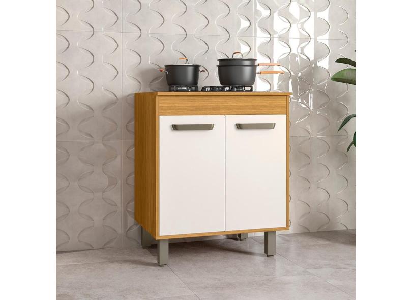 Balcão de Cozinha 70 cm 02 Portas c/ Tampo Malta Freijó Off White Acetinado Poliman