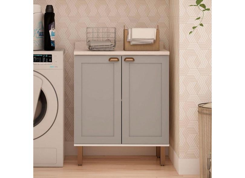 Balcão de Cozinha 80cm Iluminata 100% Mdf 2 Portas Branco/Marrom Claro - Genialflex