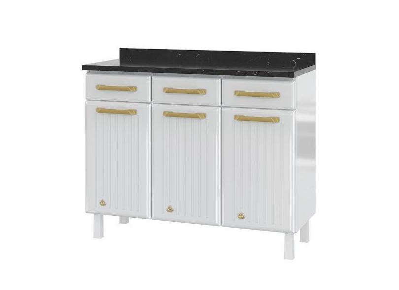 Balcão de Cozinha Aço com Tampo Diamante 3 Portas 3 Gavetas Branco - T