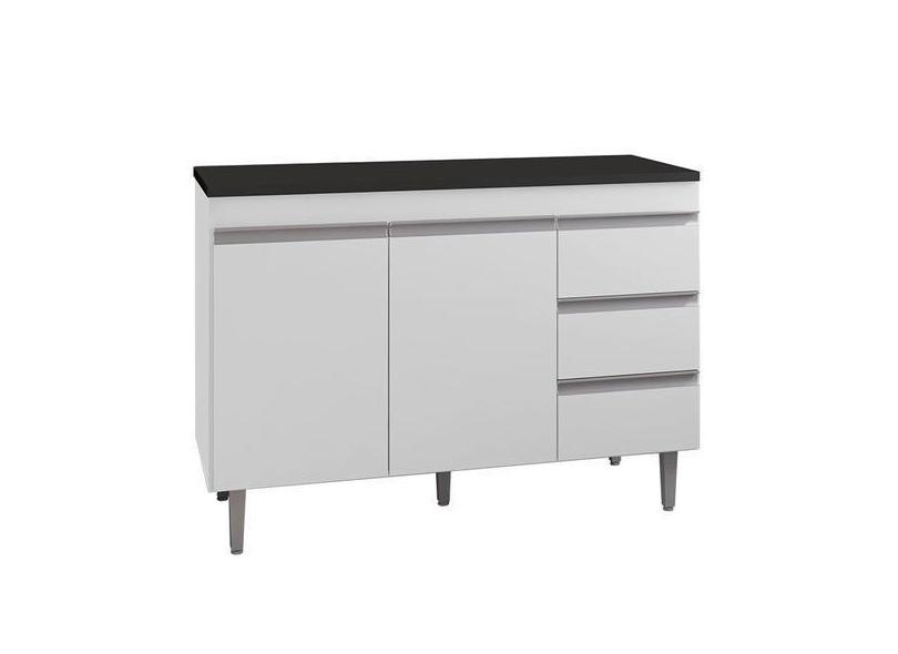 Balcão de Cozinha Andréia Branco com Tampo 120 cm Preto Fosco AJL - A