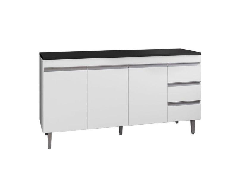 Balcão De Cozinha Andréia Branco Com Tampo 160 Cm Preto Fosco - Ajl