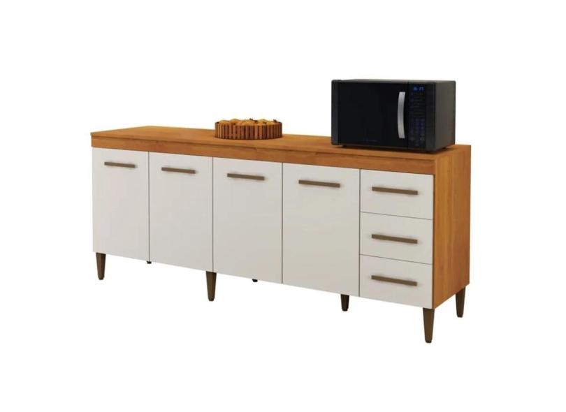 Balcão De Cozinha Atenas 4 Portas 3 Gavetas Nature Off White