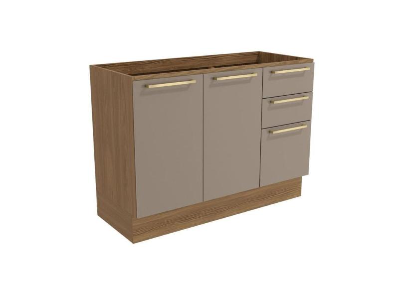 Balcão de Cozinha Botanic M624 c/ 2 Portas e 3 Gavetas 120cm Nogueira/Fendi - Kappesberg