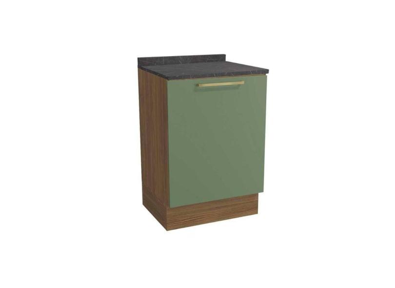 Balcão de Cozinha Botanic M629 1 Porta 60cm c/ Tampo - Kappesberg Nogueira/Oliva/Cinzel - Kappesberg