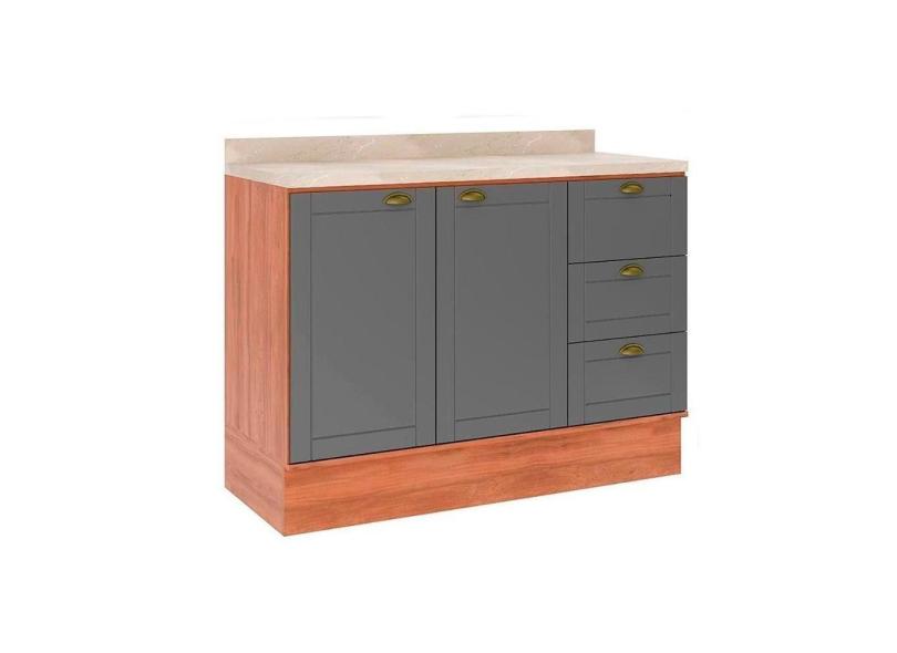 Balcão De Cozinha c- Tampo Bella 2608 c- 2 Portas E 3 Gavetas 120cm Nogal-cinza - Carraro