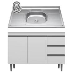 Balcão De Cozinha Com Pia Inox 100cm 3 Gavetas Andréia Branco - Ajl Mó