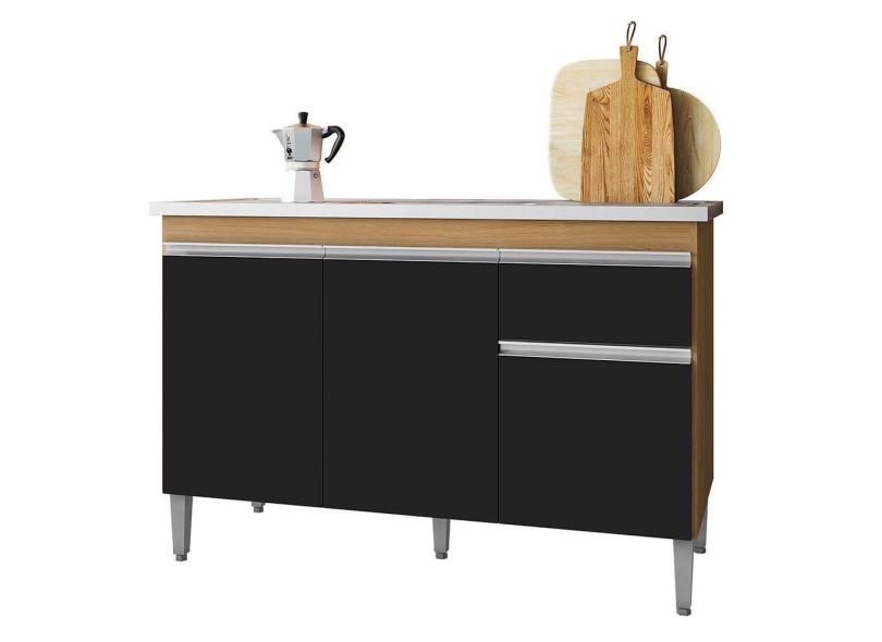 O menor preço encontrado no Brasil para Balcão De Cozinha Com Pia Inox 120cm 1 Gaveta Tatiane Amêndoa/preto - Ajl Móveis atualmente é R$ 695,99.