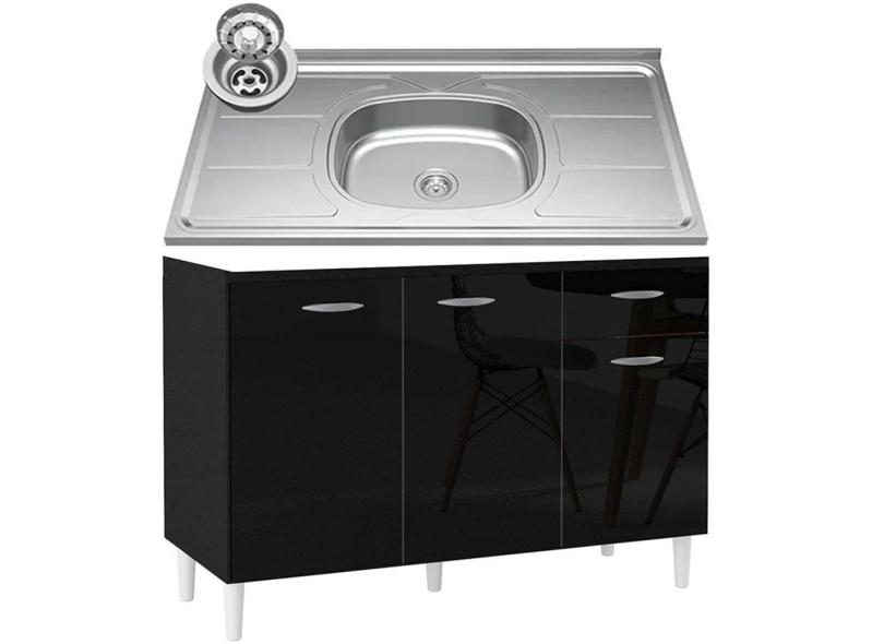O menor preço encontrado no Brasil para Balcão de Cozinha com Pia Inox 120cm 3 Portas Classic P11 Preto - Mpozenato atualmente é R$ 614,15.