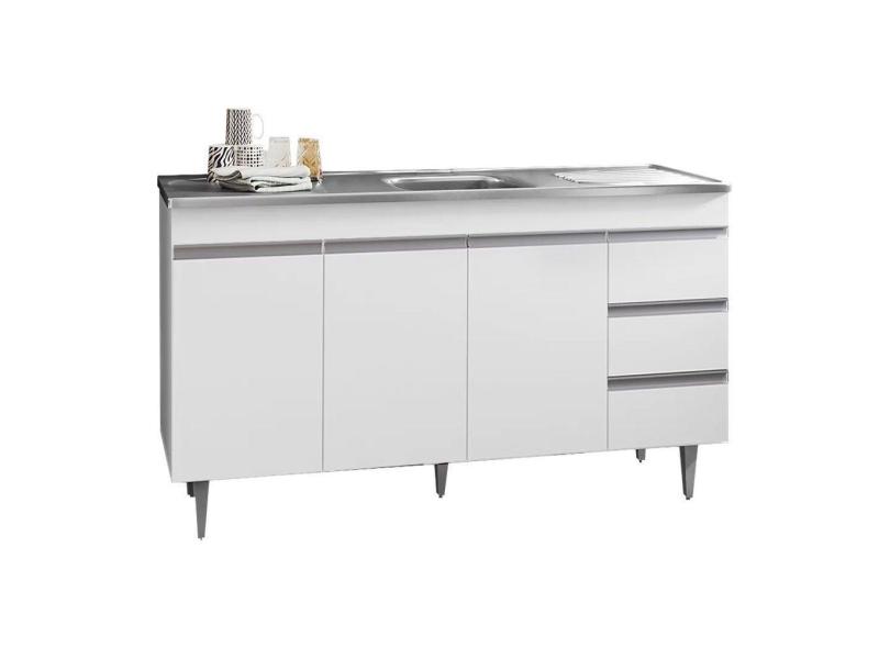 Balcão De Cozinha Com Pia Inox 160cm 3 Gavetas Andréia Branco - Ajl Móveis