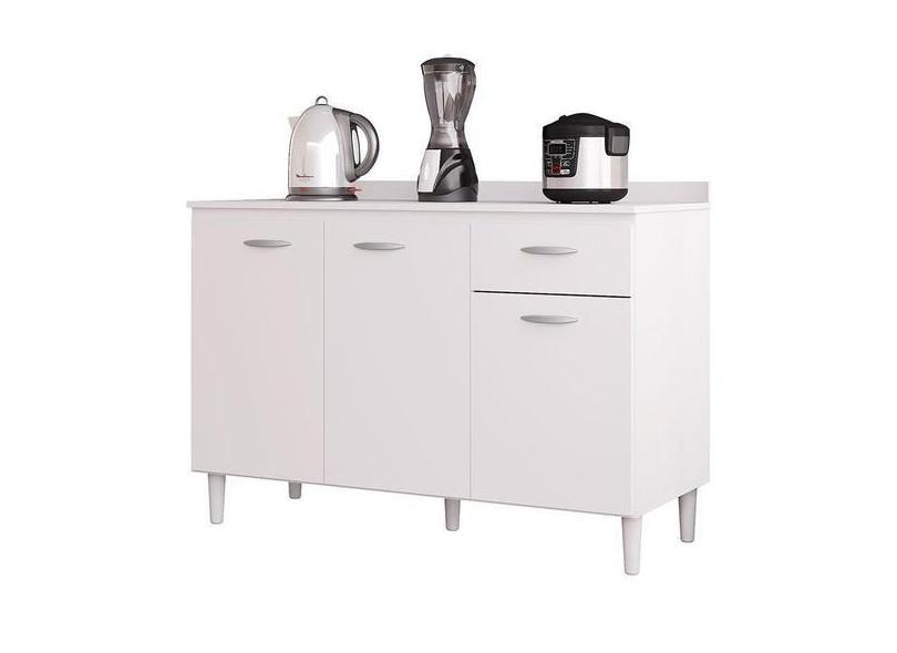 Balcão De Cozinha Com Tampo 120 Cm Branco Brilho - Poquema - Poquema I