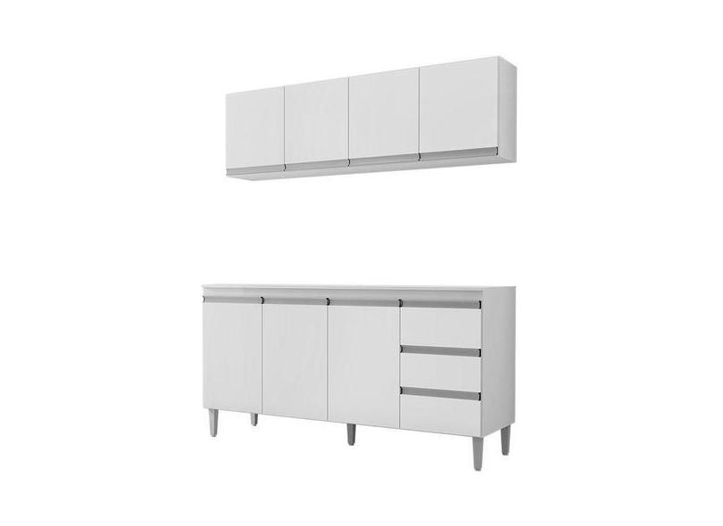 Balcão De Cozinha Com Tampo 160 Cm E Armário Aéreo Andréia Branco Bril