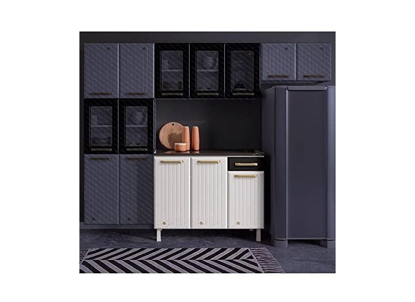 Balcão de Cozinha com Tampo 3 Portas 1 Gaveta Diamante Smart Telasul Branco/preto