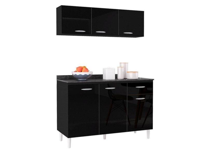 O menor preço encontrado no Brasil para Balcão De Cozinha Com Tampo E Armário Aéreo 120 Cm Preto - Poquema atualmente é R$ 363,60.