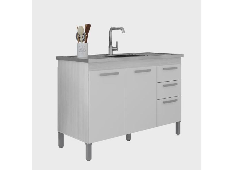Balcão de Cozinha com Tampo Inox 120cm Luna I01 Carvalho Branco - Clique Chique
