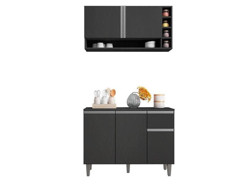 Balcão De Cozinha E Armário Aéreo Vanessa Cinza Fosco - Ajl