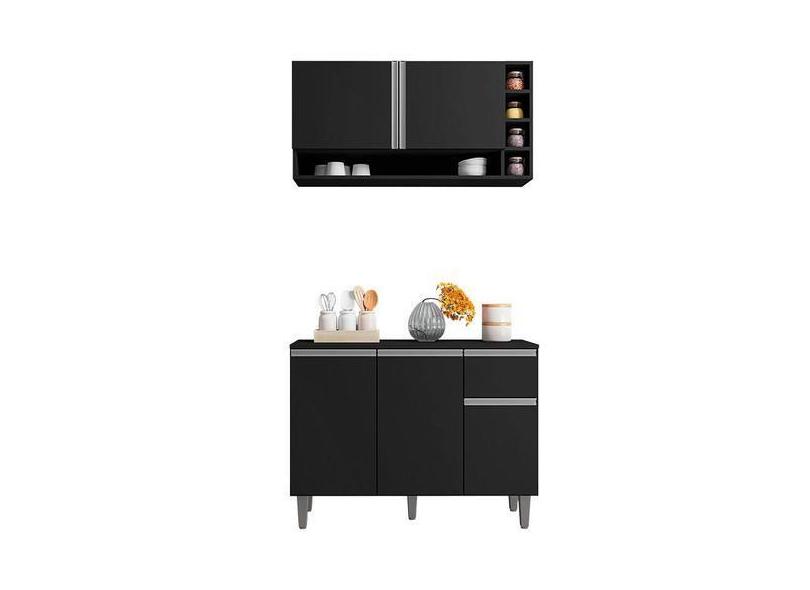 Balcão De Cozinha E Armário Aéreo Vanessa Preto Fosco - Ajl - Ajl Móve