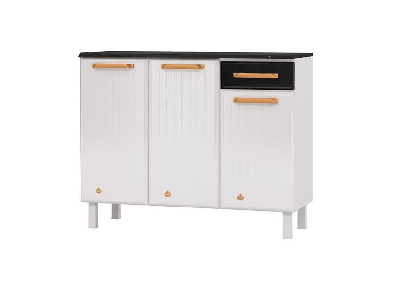 Balcão De Cozinha Em Aço Diamante 3 Portas 1 Gaveta Branco/Preto 81813