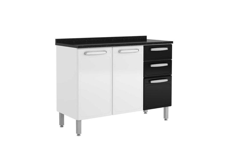 Balcão De Cozinha Evidence 7124 3 Portas E 2 Gavetas C/tampo 120cm Branco/preto - Bertolini