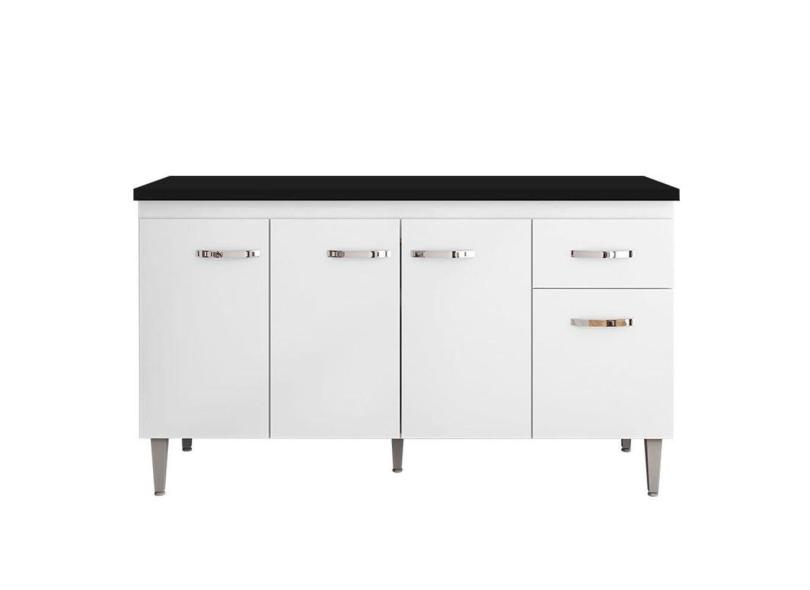 Balcão de Cozinha Gabriela Branco Flex com Tampo 150 cm Preto Fosco - AJL
