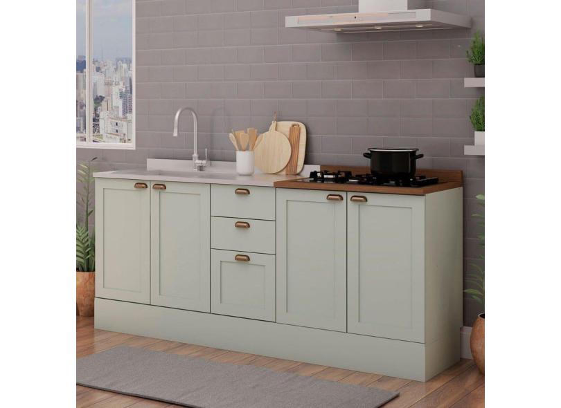 Balcão de Cozinha Iluminata 4 Portas 3 Gavetas 100% Mdf Mint/ébano - Genialflex
