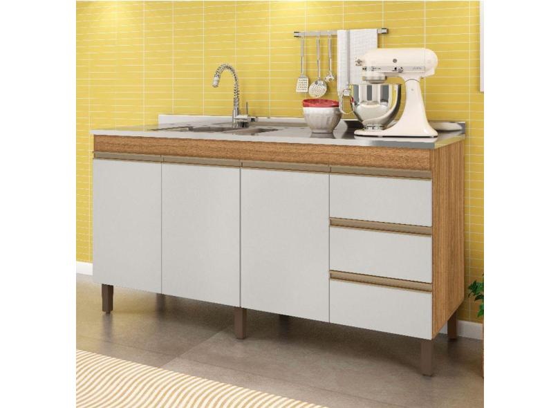 Balcão de Cozinha Karen 160cm Sem Tampo 3 Portas e 3 Gavetas Cor Nature e Off White - Peternella Móveis