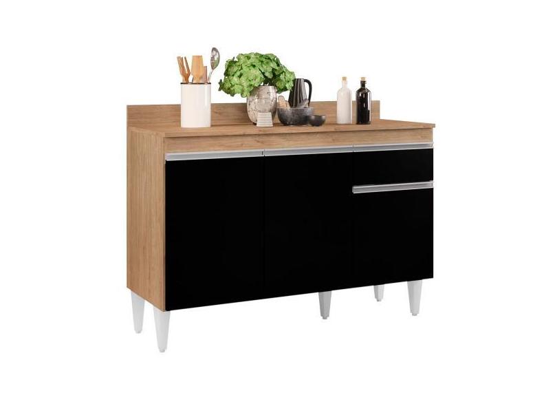 Balcão de Cozinha Lavanderia com Tampo 01 Gaveta Vick Castanho e Preto