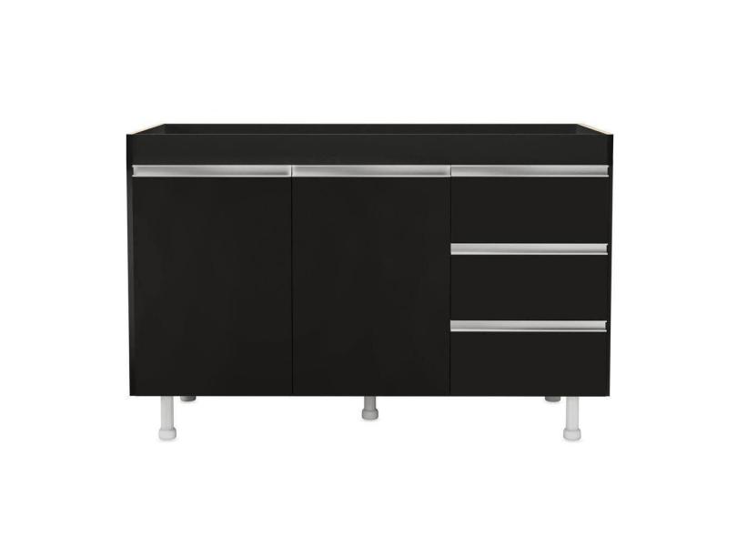 Balcão De Cozinha Lux Para Pia De 120cm 100%mdf Sem Tampo 02 Portas E 03 Gavetas Preto - Abmaza