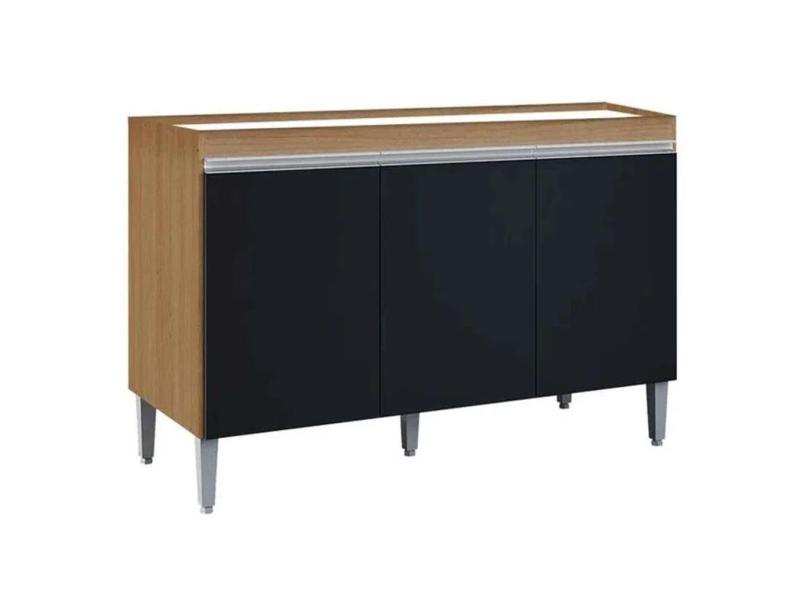 Balcão de Cozinha Manu 120cm S/ Tampo Cor Amêndoa/Preto - AJL Móveis