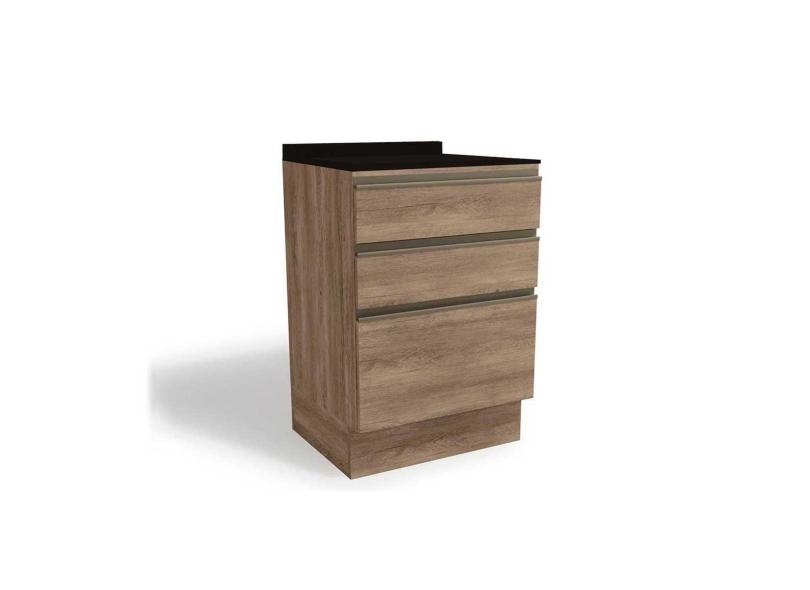 Balcão De Cozinha Maxxi G743 3 Gavetas C/Tampo 60cm Nogal/Preto - Kappesberg